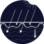 Esta energia absorvida passa para a piscina por condução, enquanto as propriedades de transmissão da camada de bolhas permitem que as ondas de radiação infravermelha (IR) passem por meio do material e sejam absorvidas diretamente pela água.
