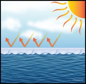 As suas propriedades criam uma barreira à evaporação, dando à piscina a capacidade de preservar a água e reduzir a perda de calor. A evaporação é o fator mais importante na manutenção da temperatura de uma piscina, sendo responsável por 70% da perda de calor nas piscinas exteriores.