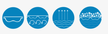 No entanto a característica principal das coberturas opacas não é aquecer a água, tem outras vantagens como a redução de químicos e a prevenção da proliferação de algas. Deste modo reduz também o consumo de recursos e energia, nomeadamente dos equipamentos de filtragem e de climatização da piscina.